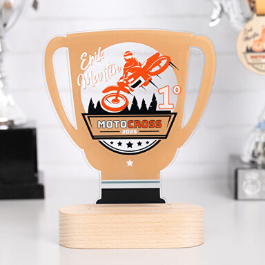 Eine andere Art von Anlässen sind Ehrungen, z. B. bei Pensionierungen. Oder Details zur Anerkennung einer Karriere oder beruflichen Tätigkeit. Sowie Gedenkfeiern, Jahrestage, etc. Bei all diesen Anlässen, sei es in Unternehmen, in Büros, in der Familie oder im privaten Bereich, kannst du auch eine personalisierte Trophäe mit Namen, Fotos, Daten oder einem Text auf der Plakette anfertigen, der den Grund für das Geschenk erklärt.